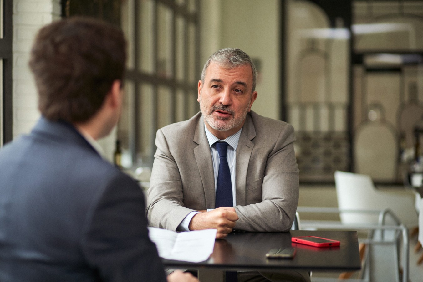 Són les 13h 30 d’un dia fred amb avís de pluja. Collboni arriba assessorat a l’hora citada a la terrassa del H10 Art Gallery. Aquest cop comencem per l’entrevista, però deixeu-me abans fer-vos un petit tast del dinar Intermèdia Confidencial que com sempre presenta el Toni Rodríguez ben acompanyat per l’Albert Ortas i l’Aina Rodríguez en una taula principal plena d’empresaris i directius de renom.