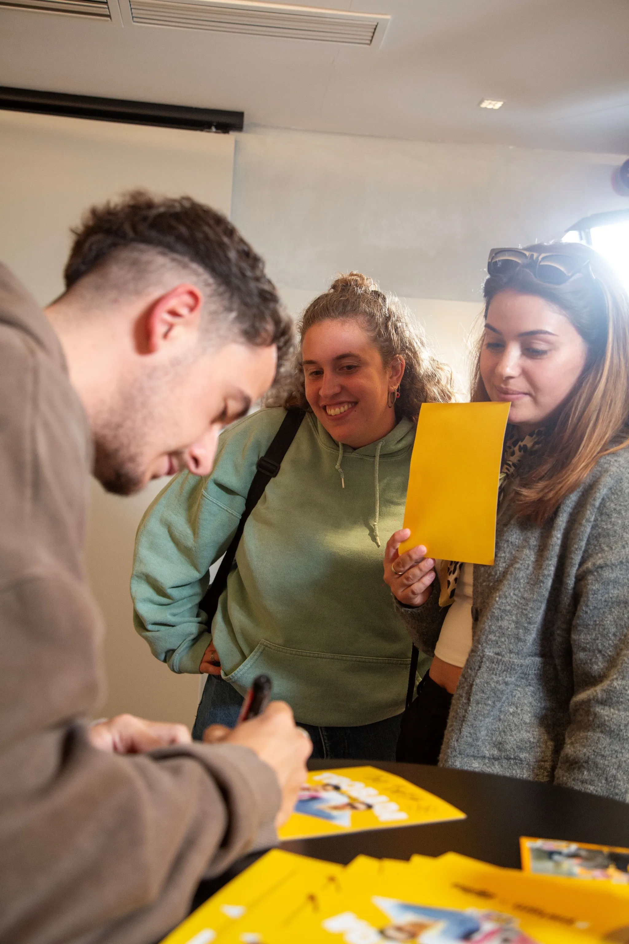 Tot plegat va començar amb més de 200 persones inscrites que feien cua pacientment per aconseguir una signatura, una foto i, si sonava la flauta, poder tenir una llarga conversa amb els seus ídols. La cua era un collage humà: famílies amb nens petits, grupets d’adolescents emocionats, parelles de mitjana edat i, fins i tot, algun assistent d’edat més avançada i amb experiència en cues, com aquell senyor que va deixar clar que “ja no tinc edat per estar dret tanta estona” i es va plantar al banc del davant mentre dos nois li guardaven el lloc. Tot controlat.
