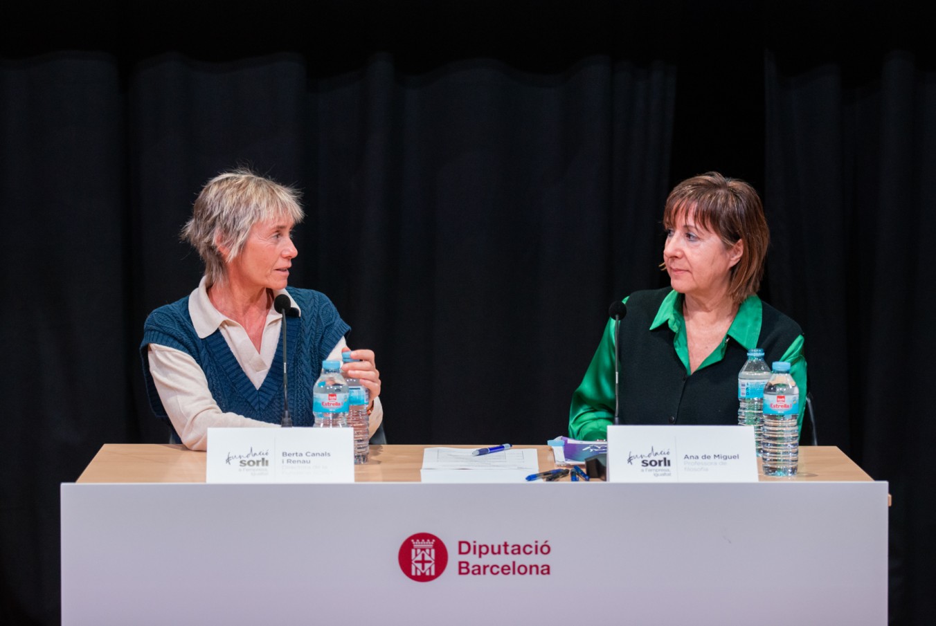 La primera part de l’acte va comptar amb les intervencions d’Alba Barnusell Ortuño, diputada delegada de Polítiques d’Igualtat de la Diputació de Barcelona; de l’Anna Sorli Gorriz, presidenta de la Fundació Sorli, i de Berta Canals i Renau, directora de la Fundació. La conferència inaugural va ser impartida per l’Ana de Miguel Álvarez, catedràtica de Filosofia Moral i Política, feminista, escriptora i investigadora.
