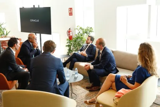 El president de la Generalitat, Pere Aragonès, va inaugurar el nou espai acompanyat pel director general d’Oracle Ibèrica, Albert Triola; el director de l’oficina d’Oracle a Barcelona, Joan Planella; el secretari d’Empresa i Competitivitat, Albert Castellanos, i la directora de Societat Digital, Joana Barbany.