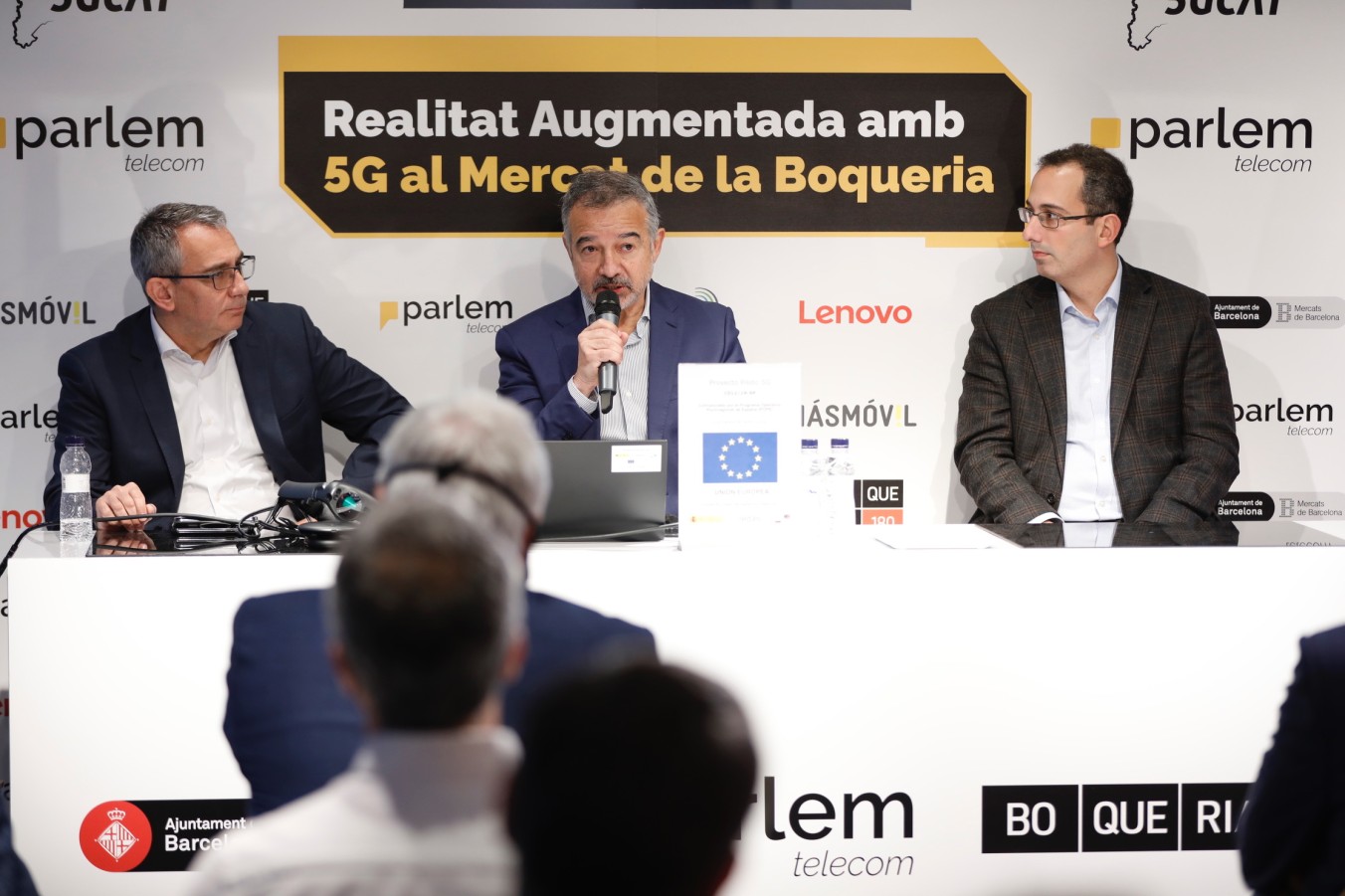 Els portaveus d’aquesta prova 5G a Barcelona han estat Ernest Pérez-Mas, CEO de Parlem Telecom; Alberto Martínez Lacambra, director general de Red.es; Eduardo Fichmann, director Global d’Innovació i Estratègia de Producte de Cellnex Telecom; Antonio Bocigas, Director Telco EMEA a Lenovo i Òscar Ubide, gerent del Mercat de La Boqueria. Manolo Ginart, responsable d’operacions Telco de Parlem Telecom, ha exposat davant dels mitjans de comunicació la demostració tècnica del cas d’ús 5G juntament amb Mohamad Hjeij (enginyer de programari de realitat virtual de la Fundació i2CAT) i Gianluca Cernigliaro (líder tècnic a Realitat Virtual i Realitat Augmentada de la Fundació i2CAT).
